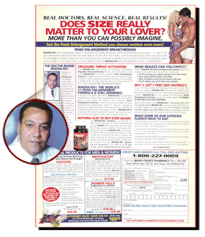 The ads for Magna Rx tout a Dr. George Aguilar MD as a genius behind this breakthrough product. As you will see from the bottles picture at the bottom, which incredibly are now sold in GNC stores, they put this mans photo on the front of the packaging. Their whole marketing angle is that they claim to use Real Doctors and Real Science to deliver Real Results. As you will see it is a Real Rip Off.